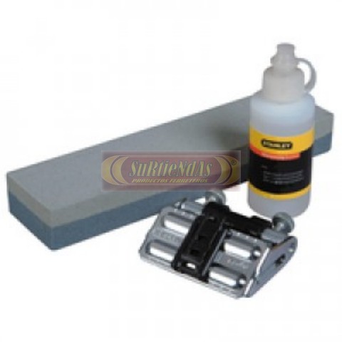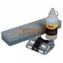 Kit con guía y piedra de afilado. Incluye frasco de aceite blanco no inflamable ni tóxico. Para afilar formones de cualquier ancho con el ángulo exacto y de forma precisa.