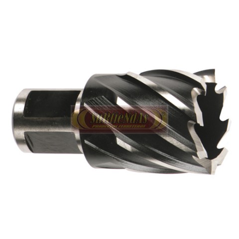 Para taladro de columna de base magnético y taladros de pie con conexión a cono Morse, usando adaptador. La aleación de cobalto da a la broca mayor resistencia al calor y mejora las prestaciones en materiales difíciles de taladrar