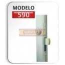 Para puertas de abatir. Doble cilindro. Las manijas operan el picaporte por ambos lados. El cerrojo se acciona con llave por ambos lados. Sistema Permafix de fijación permanente de manijas.