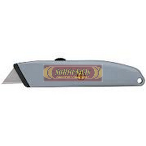 Ideal para múltiples aplicaciones. Cuerpo bi-material de metal y plástico y mecanismo patentado de nariz superpuesta mantiene segura la hoja en su posición