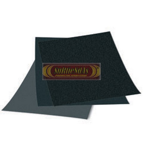 Hoja de lija de agua para lijado a mano. Fabricada con carburo de silicio sobre un respaldo de papel C de látex flexible.