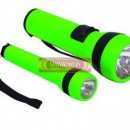 LINTERNA verde de plastico ocupa dos pilas AA.
