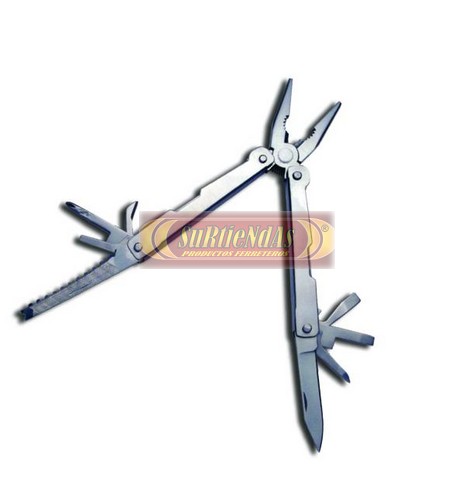 Cuerpo de acero inoxidable. Cabeza de punta y corte. Incluye estuche de nylon