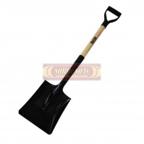 Pala cuadrada de madera, hoja de acero, mango corto.