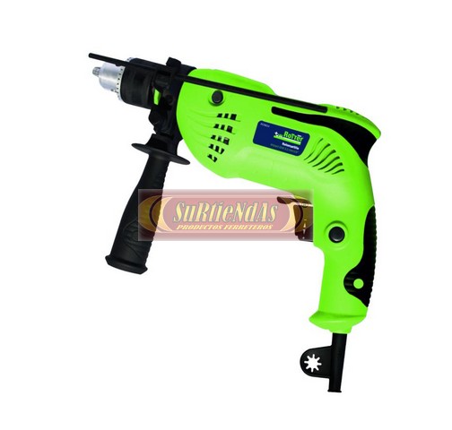 Incluye mango lateral y guia. Mango soft touch. Velocidad variable. Reversible. Botón de percusión