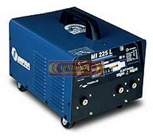 | Alimentación: 220 Volts, 45 Amps., una fase 60 Hertz. Max. V. C. A.: 60 Volts. CA. Salida nominal: 155 amp. @ 25 Volts CA, 20% ciclo de trabajo. Salida máxima: 225 amp. @ 25 Volts CA, 10% ciclo de trabajo. Salida continua: 70 amp. @ 23 Volts CA, 100% ciclo de trabajo. Gama de corriente: Rango bajo 45 a 160 Amps. CA. Rango alto 85 a 230 Amps. CA. Control: Mecánico de corriente |