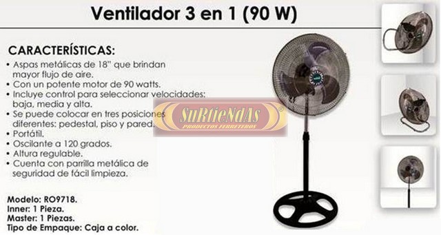 Ventilador 3 en 1 90W surtiendas